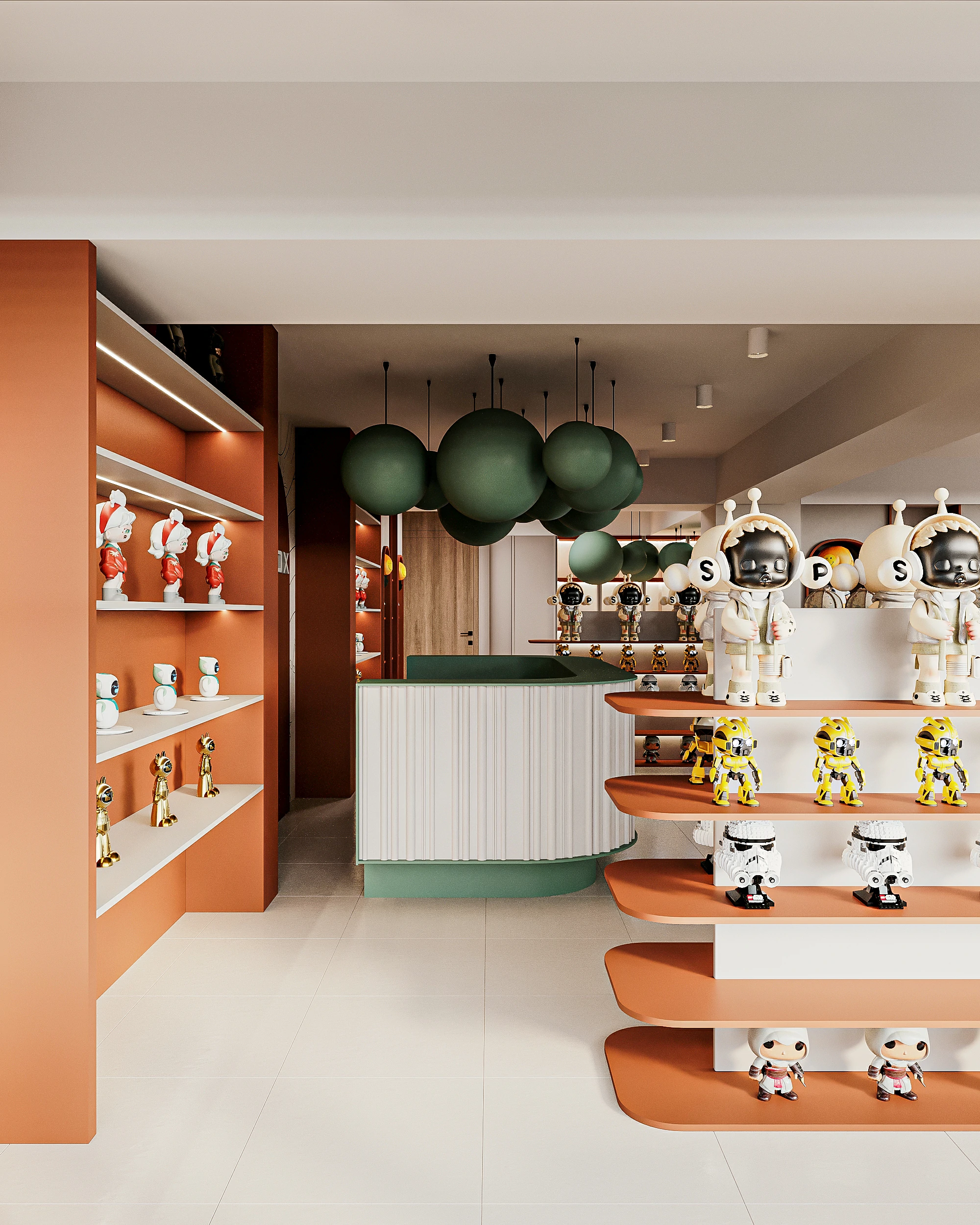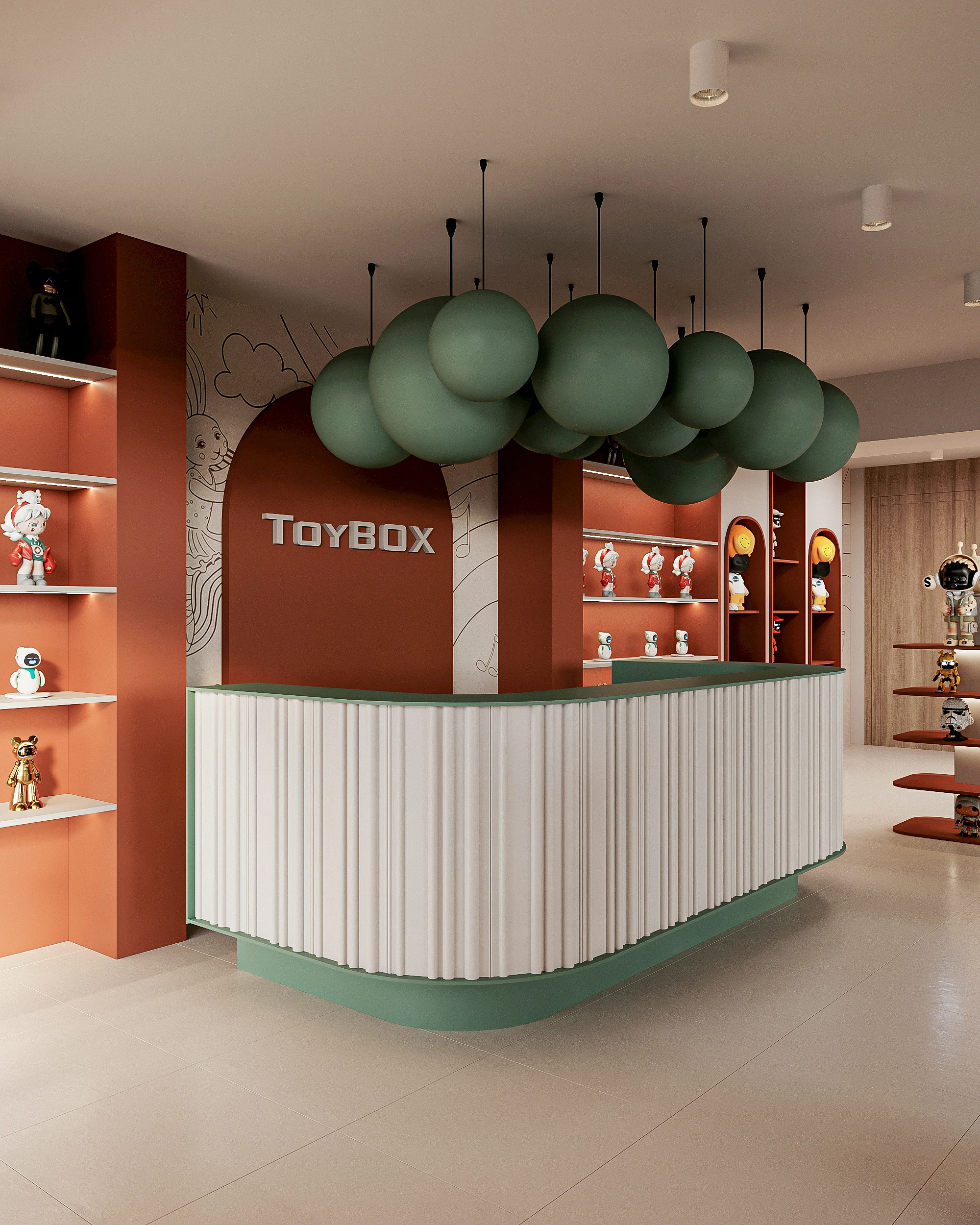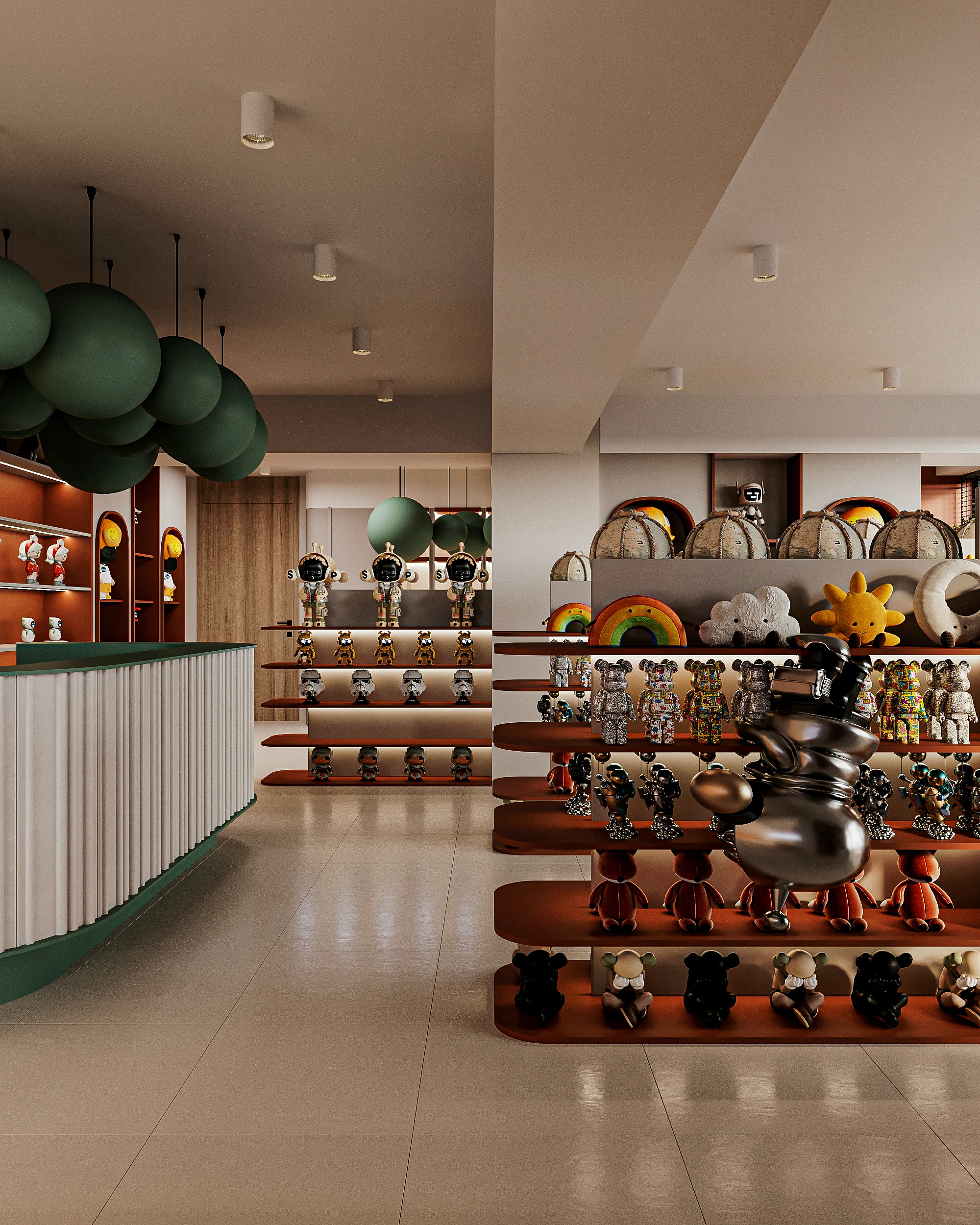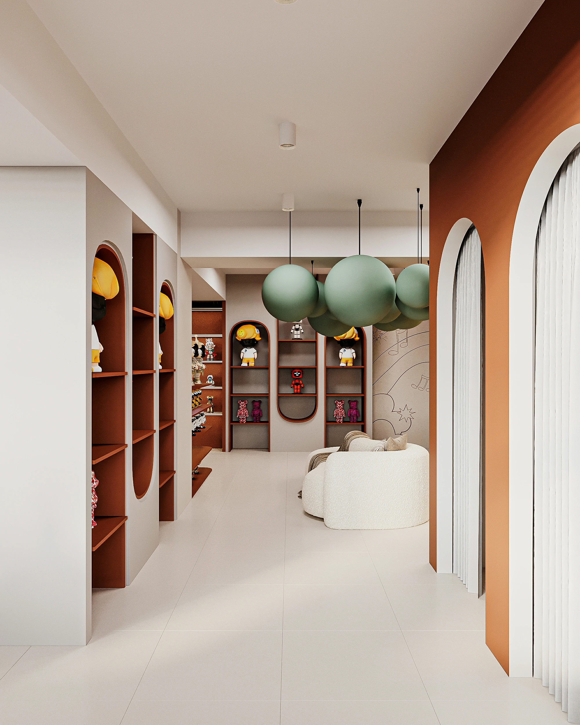 Проект разработан для современного магазина игрушек. Интерьер вдохновлён стилем модерн, сочетающим плавные линии, натуральные материалы и утончённые декоративные элементы. Основная идея: Сделать пространство не просто торговым залом, а местом, куда хочется возвращаться - как детям, так и взрослым.