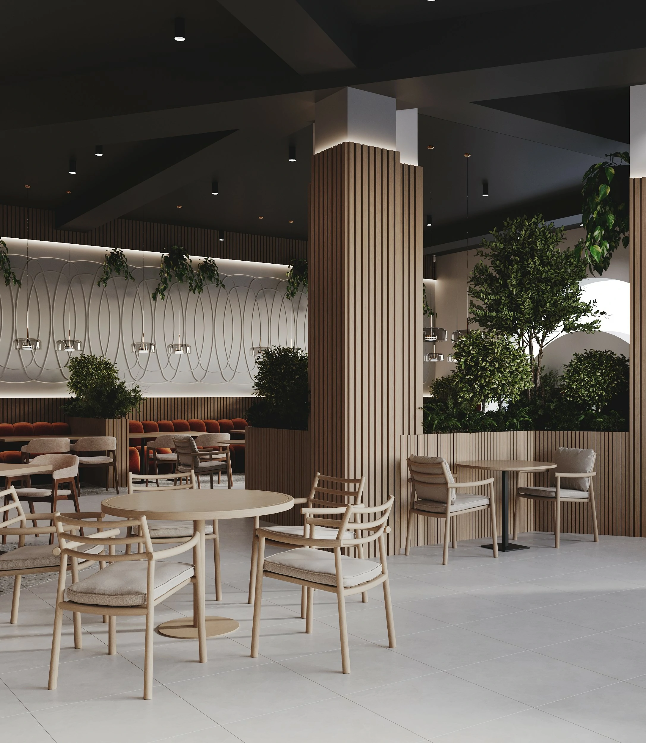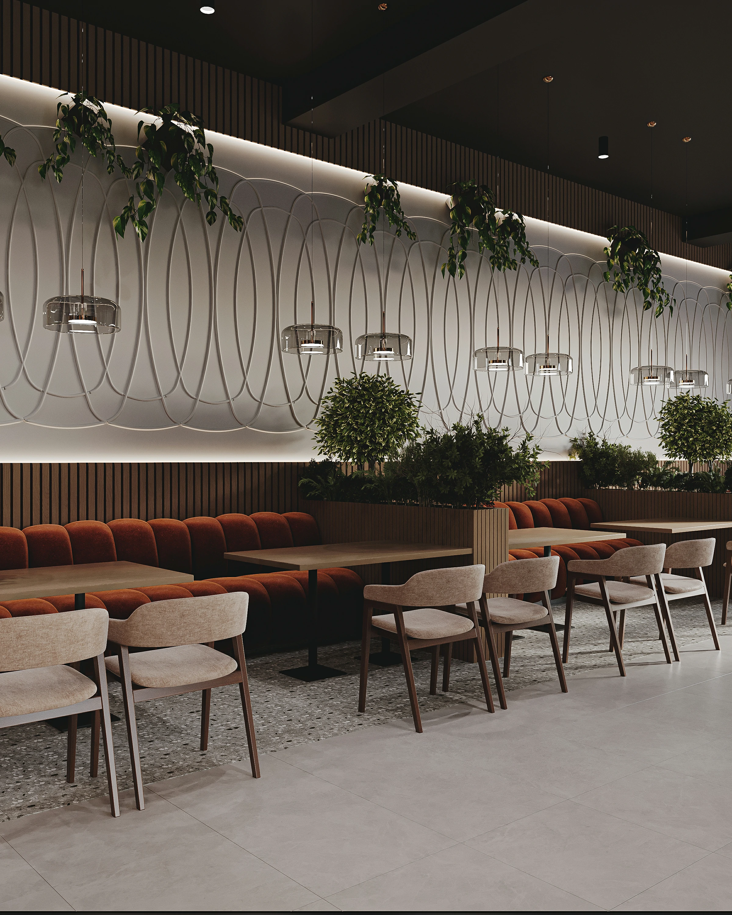 Проект турецкого ресторана сочетает в себе элегантность стиля модерн и богатство восточной атмосферы. Интерьер продуман до мелочей — от плавных линий архитектуры до игры света и текстур. Пространство создаёт ощущение тепла, уюта и изысканности, характерных для традиционной турецкой культуры, но в современном прочтении.