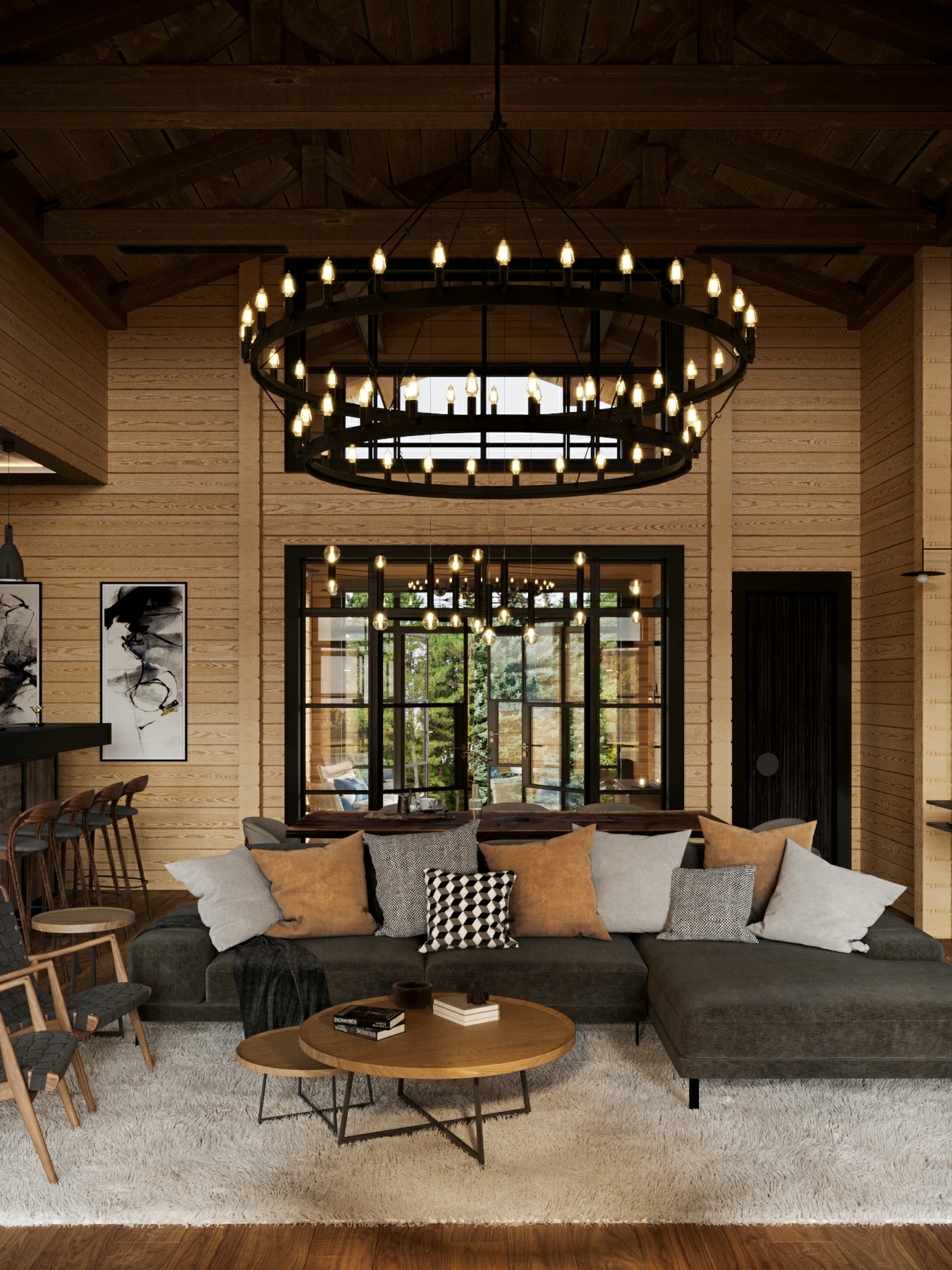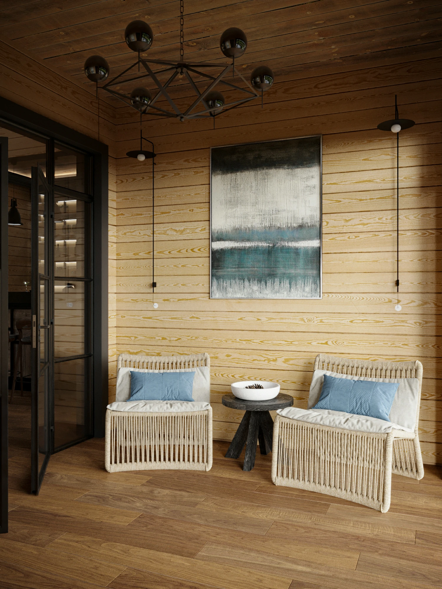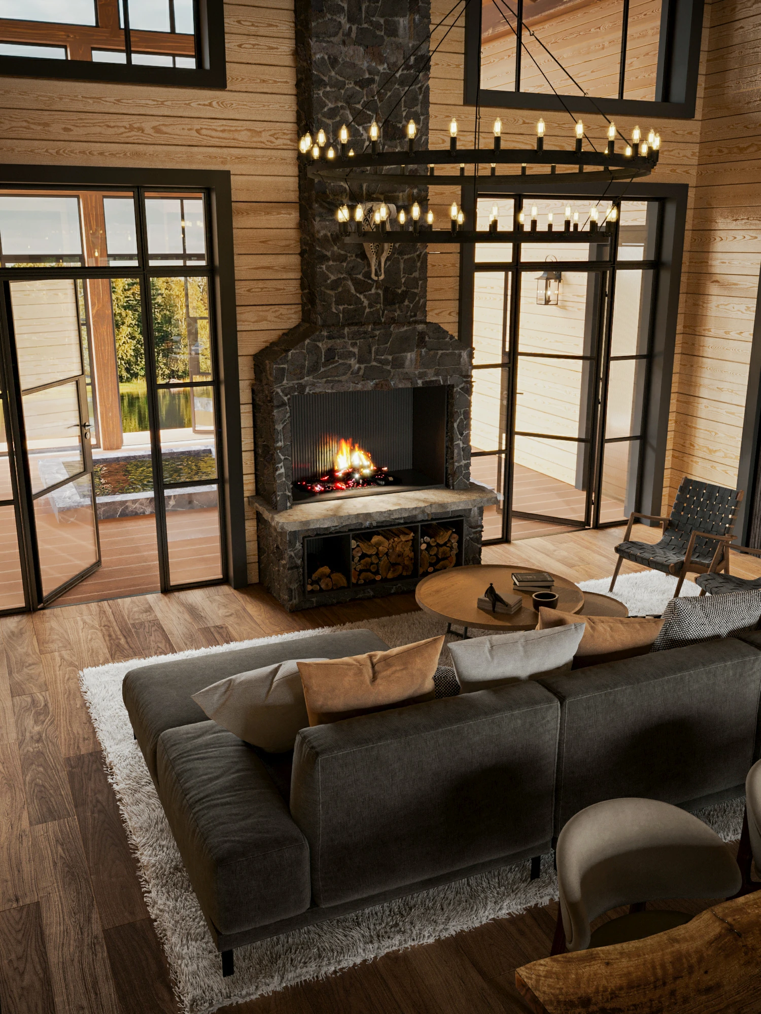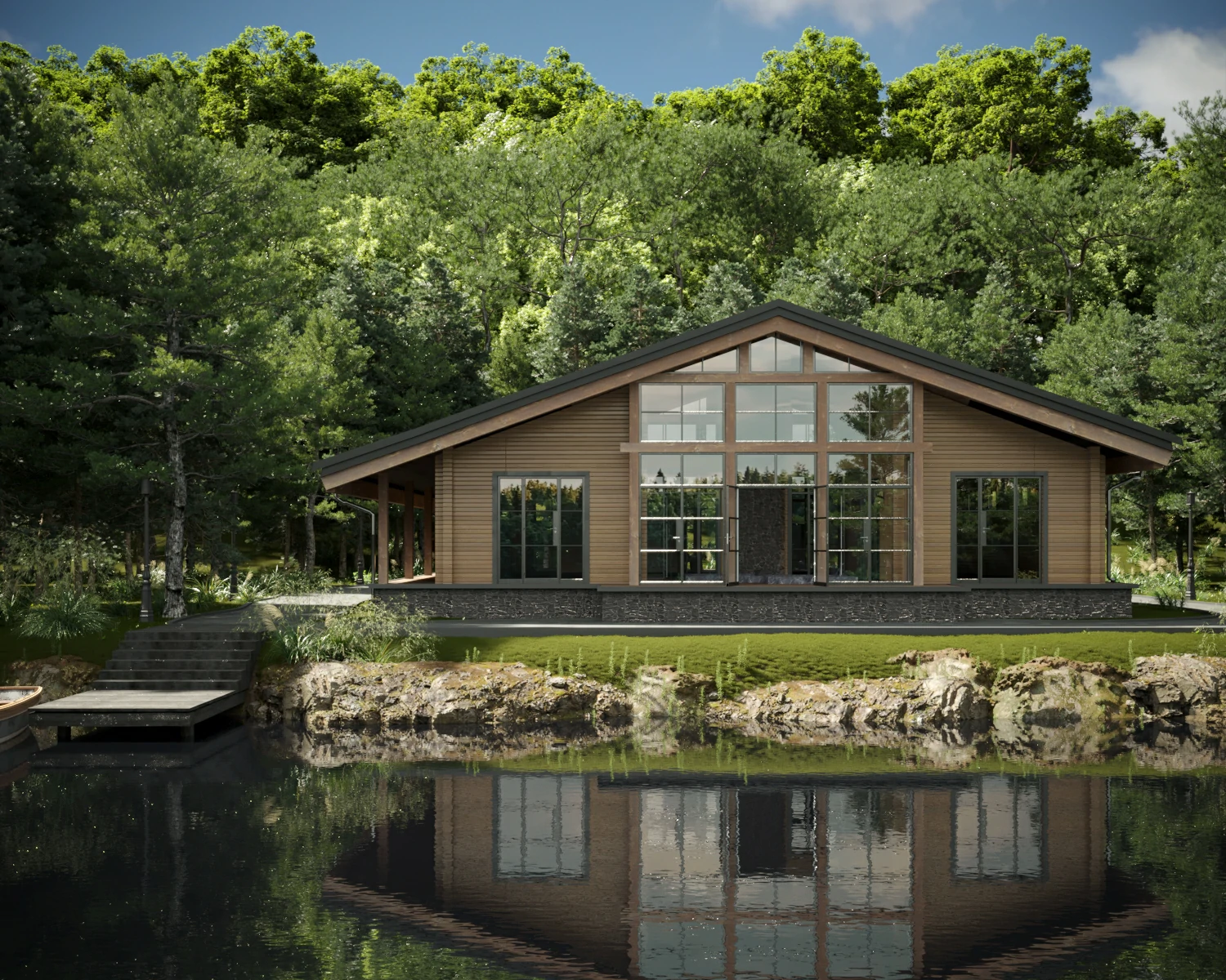 Одноэтажный дом с панорамным остеклением, расположенный на берегу озера. Натуральные материалы, простая геометрия и открытые виды создают атмосферу уединения и гармонии с природой. Просторная терраса и большие окна объединяют внутреннее пространство с окружающим ландшафтом.