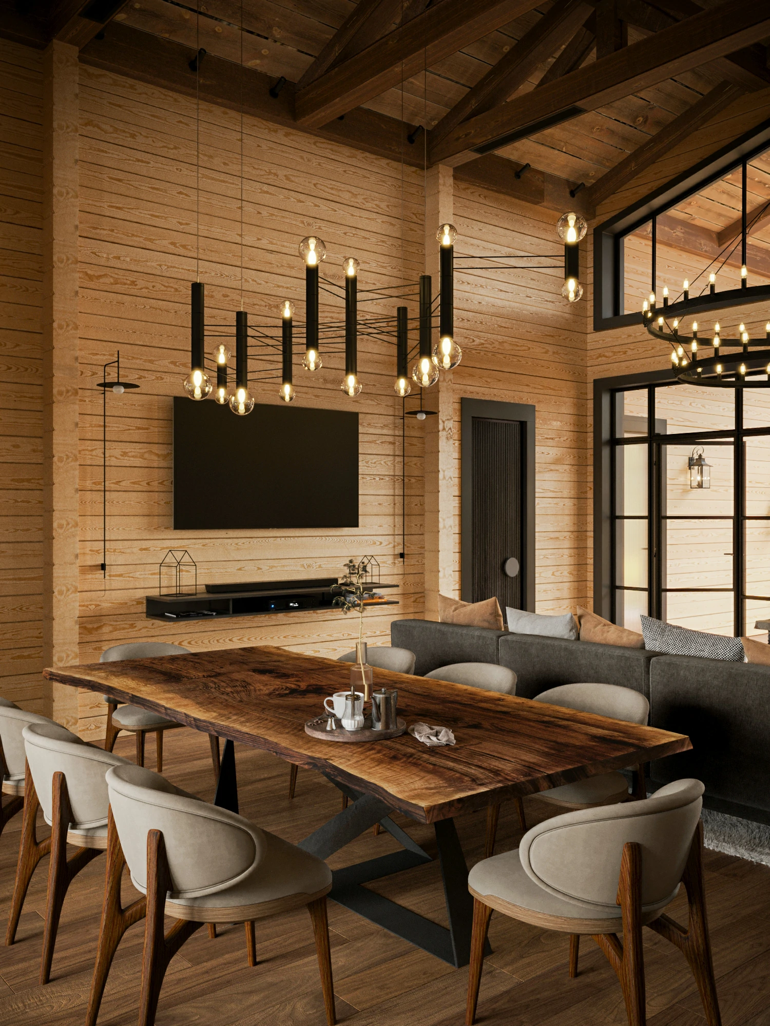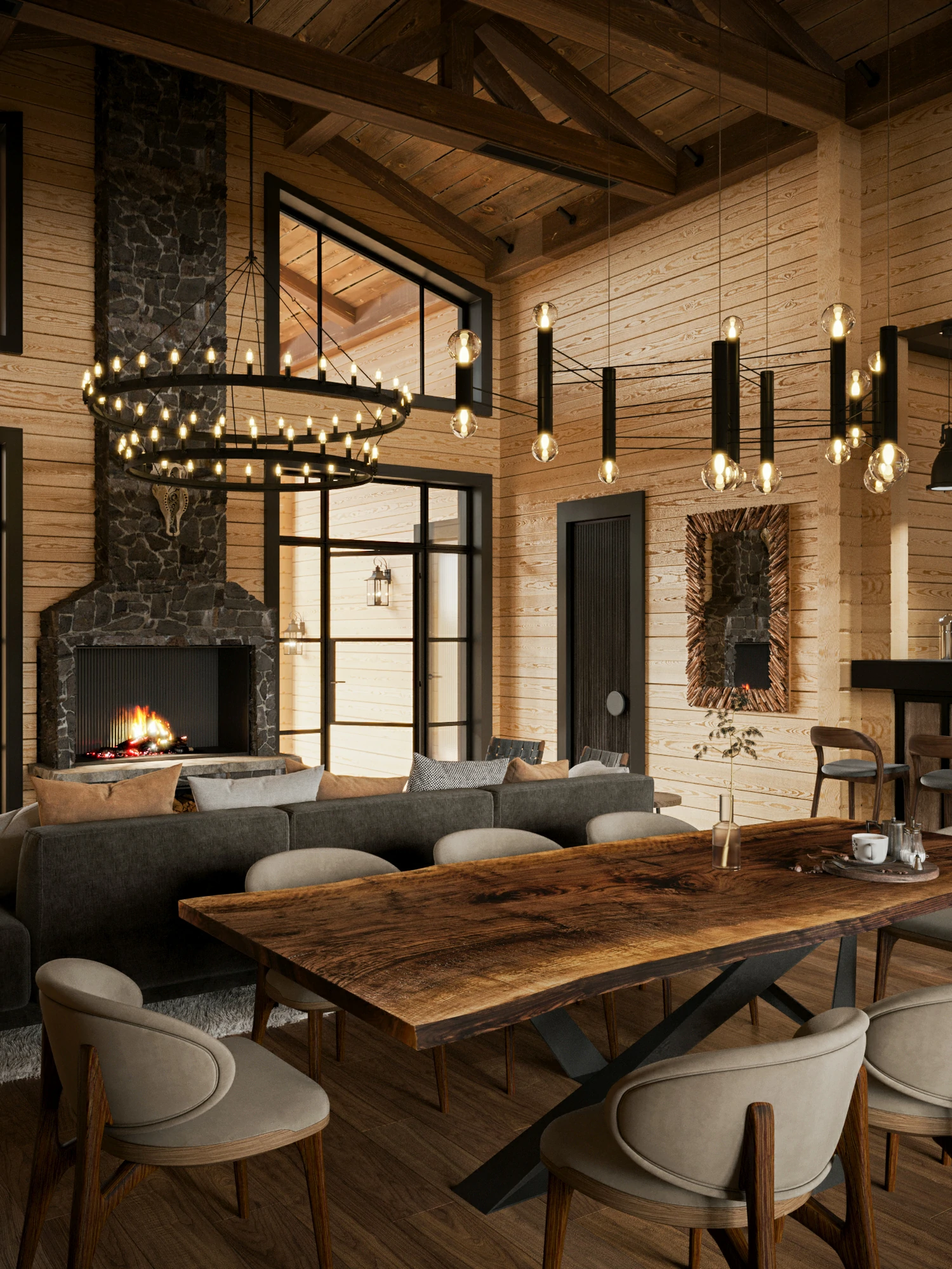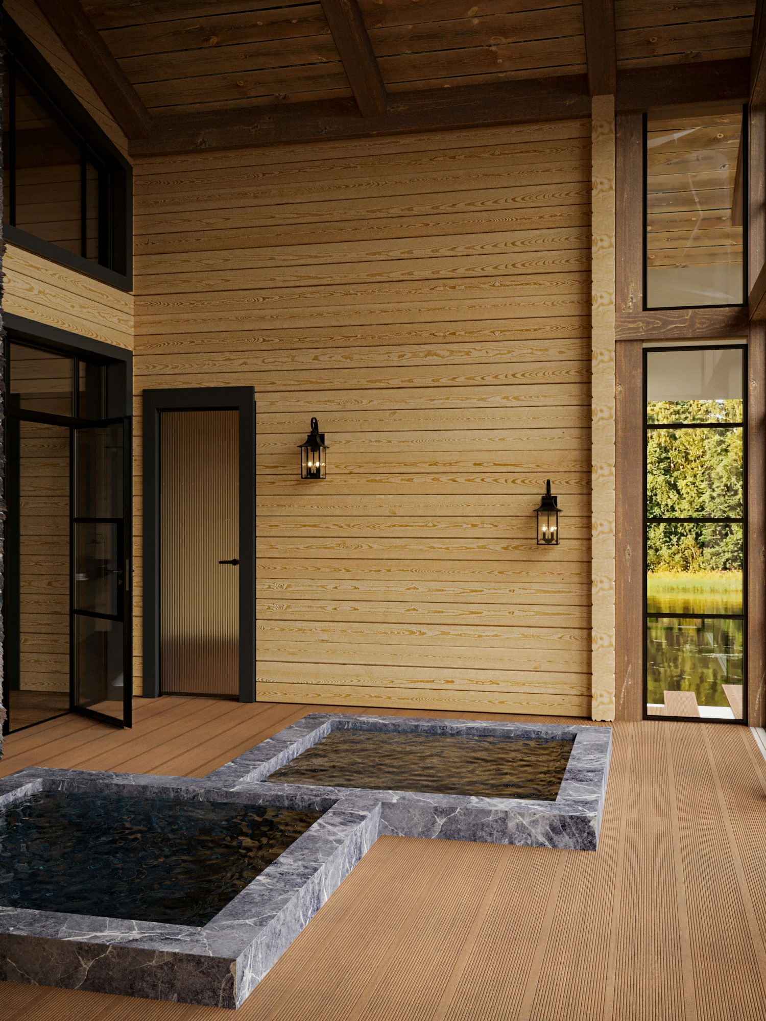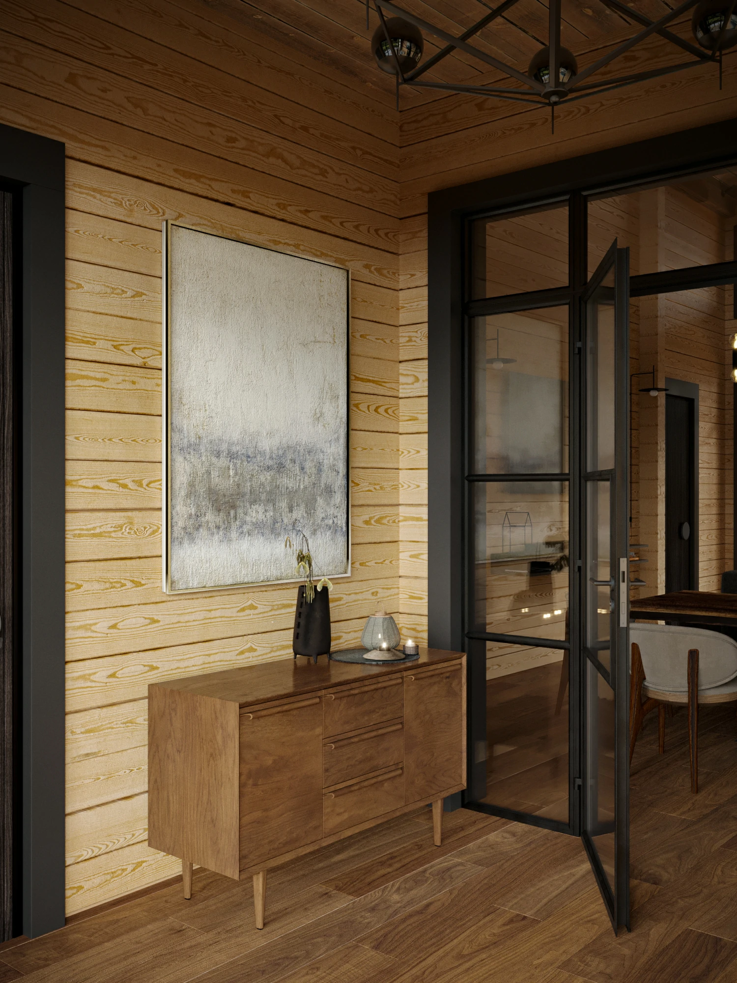 Одноэтажный дом с панорамным остеклением, расположенный на берегу озера. Натуральные материалы, простая геометрия и открытые виды создают атмосферу уединения и гармонии с природой. Просторная терраса и большие окна объединяют внутреннее пространство с окружающим ландшафтом.