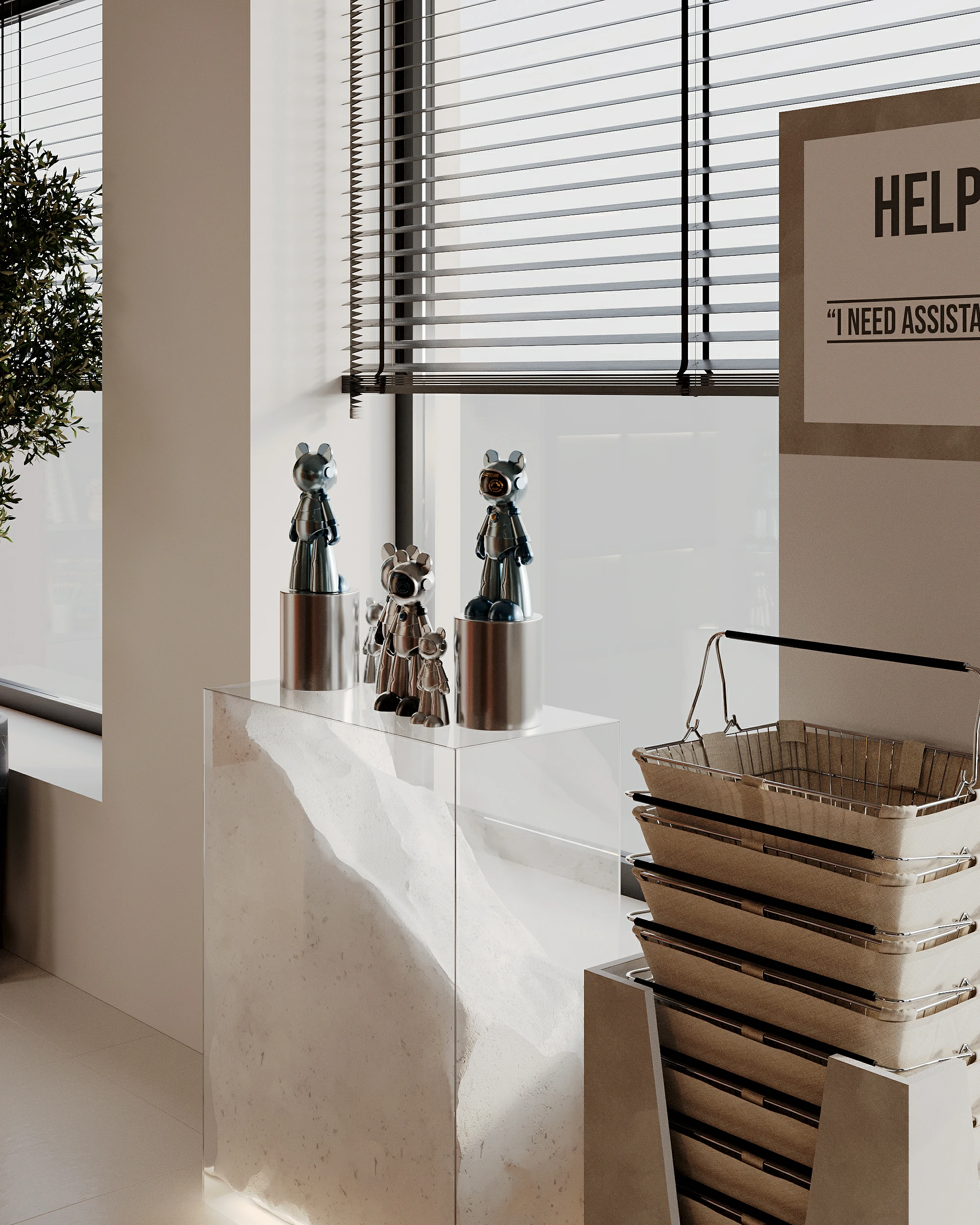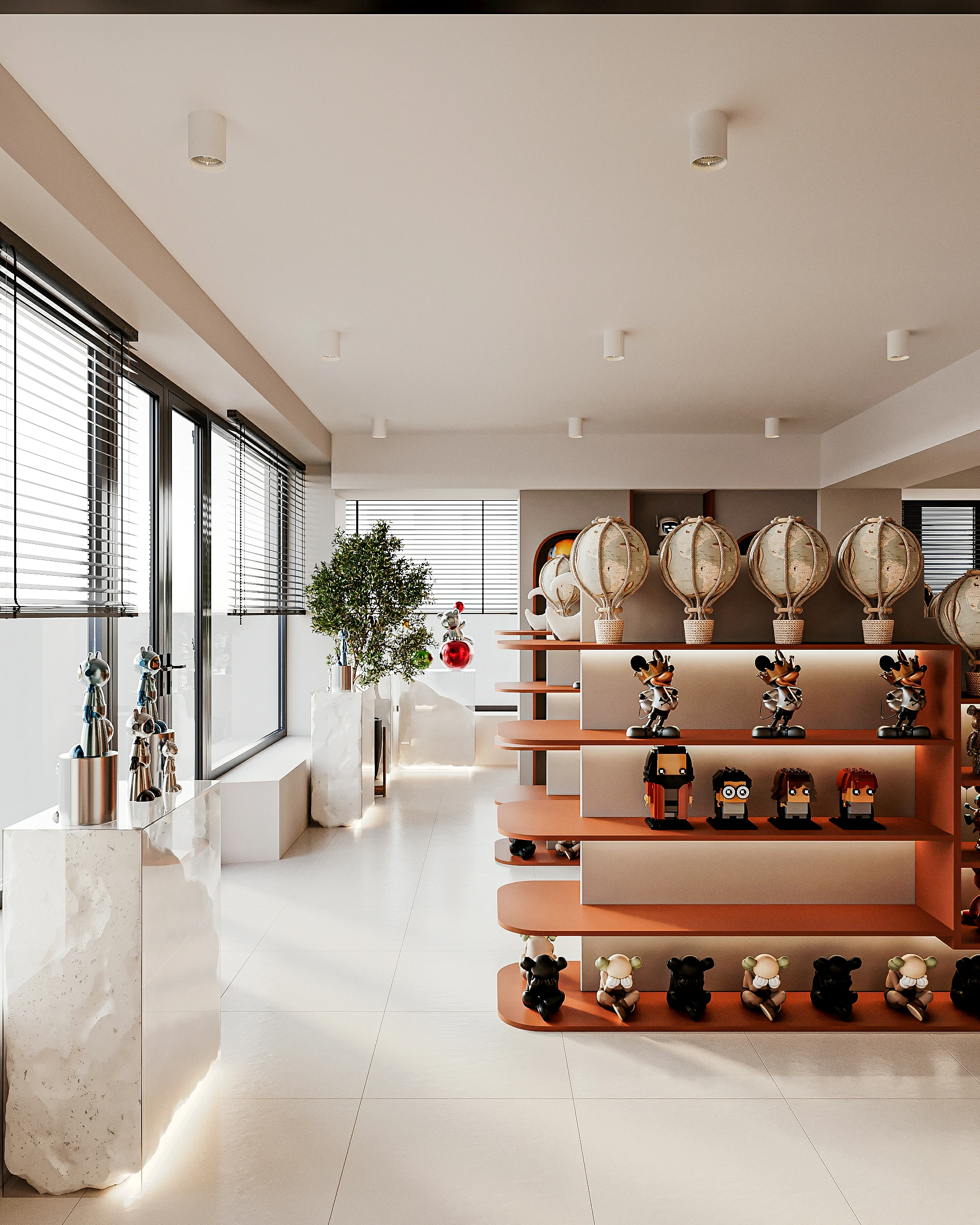 Проект разработан для современного магазина игрушек. Интерьер вдохновлён стилем модерн, сочетающим плавные линии, натуральные материалы и утончённые декоративные элементы. Основная идея: Сделать пространство не просто торговым залом, а местом, куда хочется возвращаться - как детям, так и взрослым.