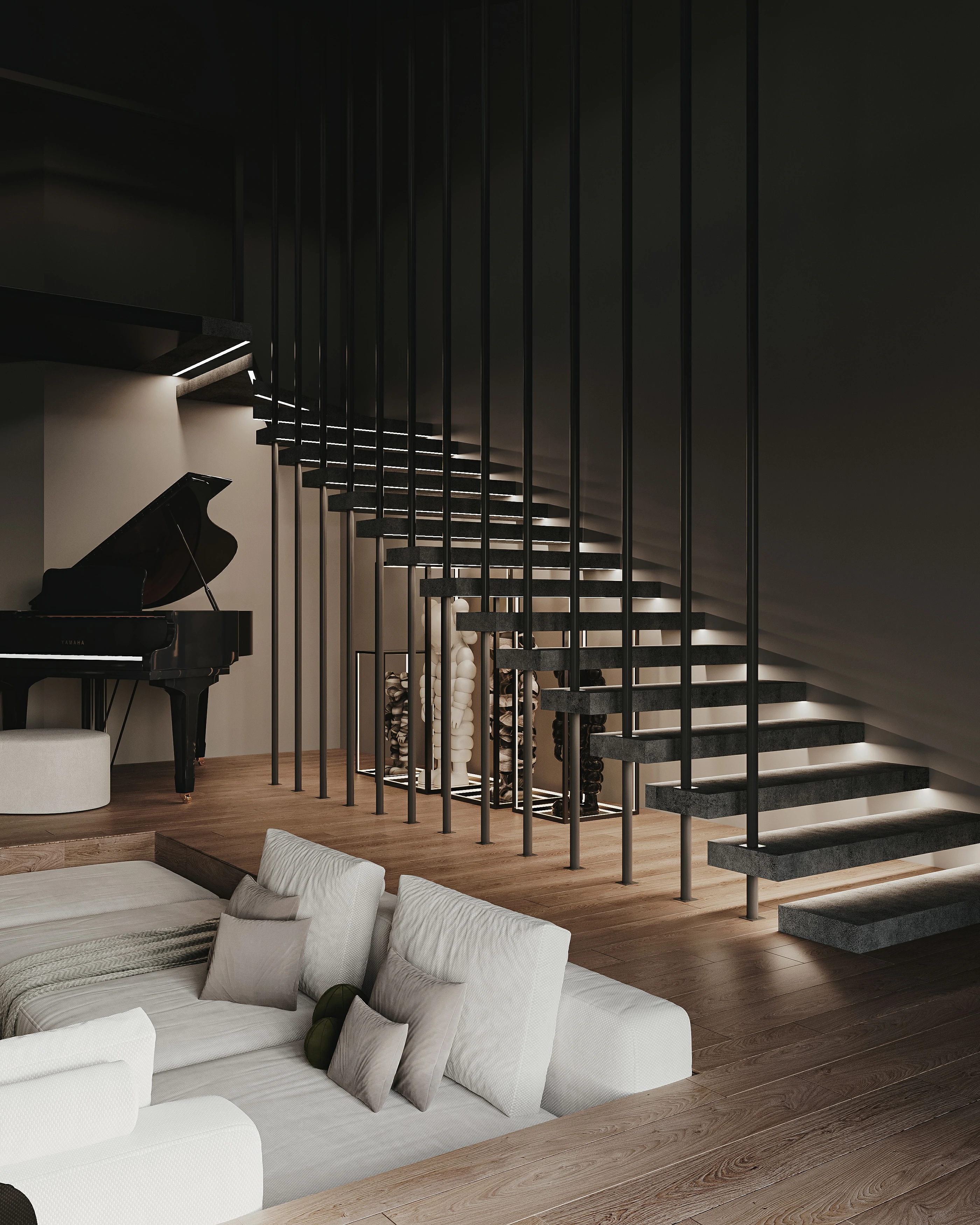 Мы завершили проект интерьера, который соединяет минимализм, текстуры и выразительное освещение. В этом пространстве каждая деталь продумана. Каждый уголок этого пространства отражает вкус, стиль и практичность. Лаконичные формы, акцентные детали и мягкое освещение создают идеальное сочетание современного дизайна.