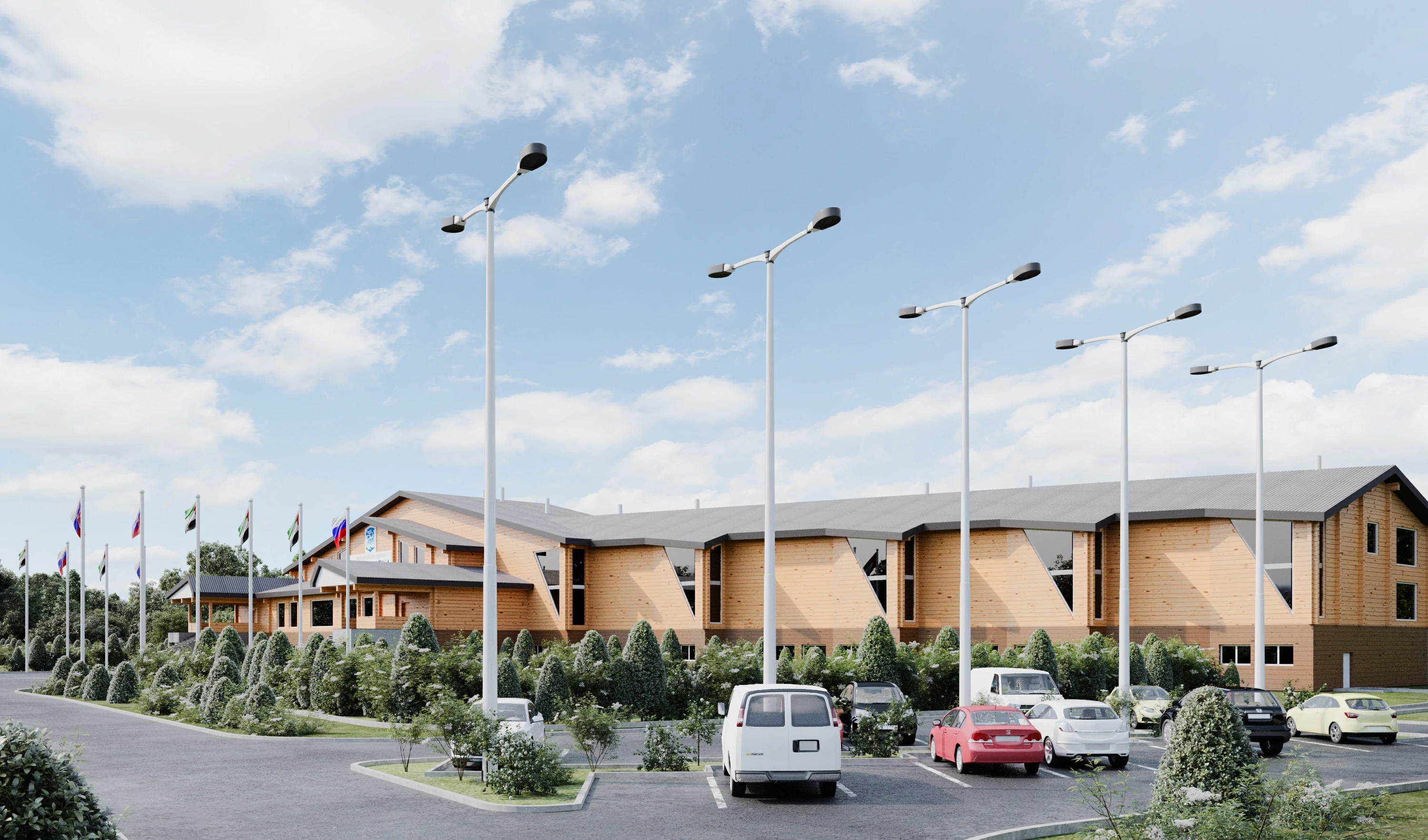 Современный комплекс на 12 гектарах, объединяющий соколиную ферму и гостиницу. Архитектура выполнена в эко-стиле с использованием дерева и панорамного остекления. Проект сочетает комфортное размещение гостей с возможностью знакомства с традициями соколиной охоты и отдыхом на природе.