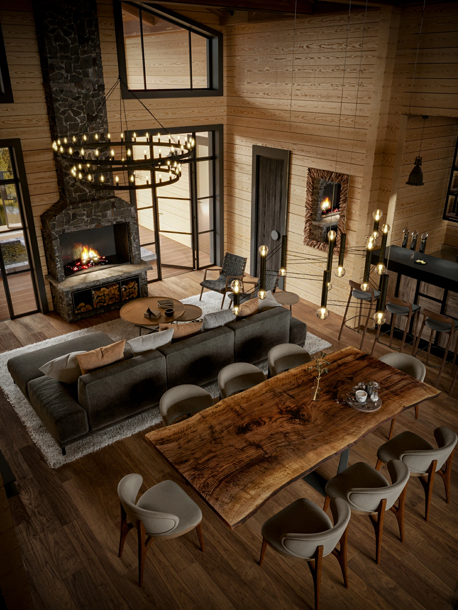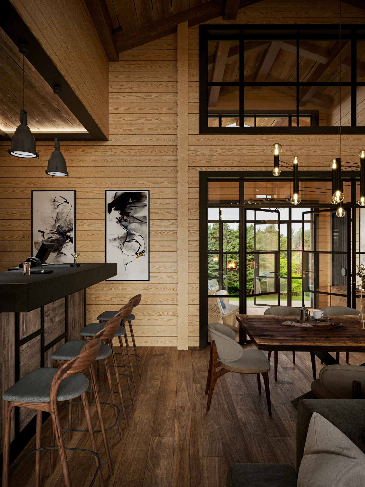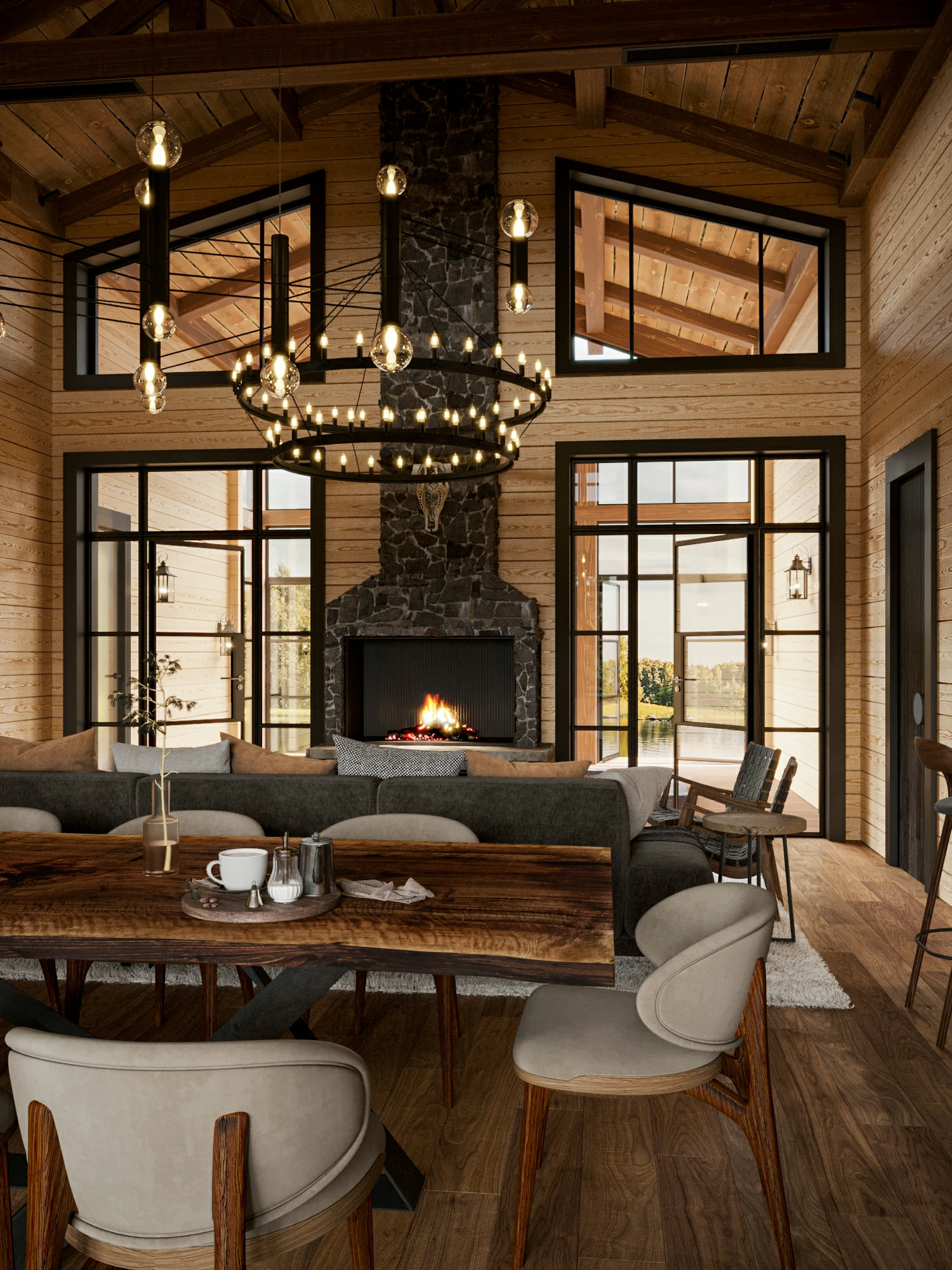 Одноэтажный дом с панорамным остеклением, расположенный на берегу озера. Натуральные материалы, простая геометрия и открытые виды создают атмосферу уединения и гармонии с природой. Просторная терраса и большие окна объединяют внутреннее пространство с окружающим ландшафтом.